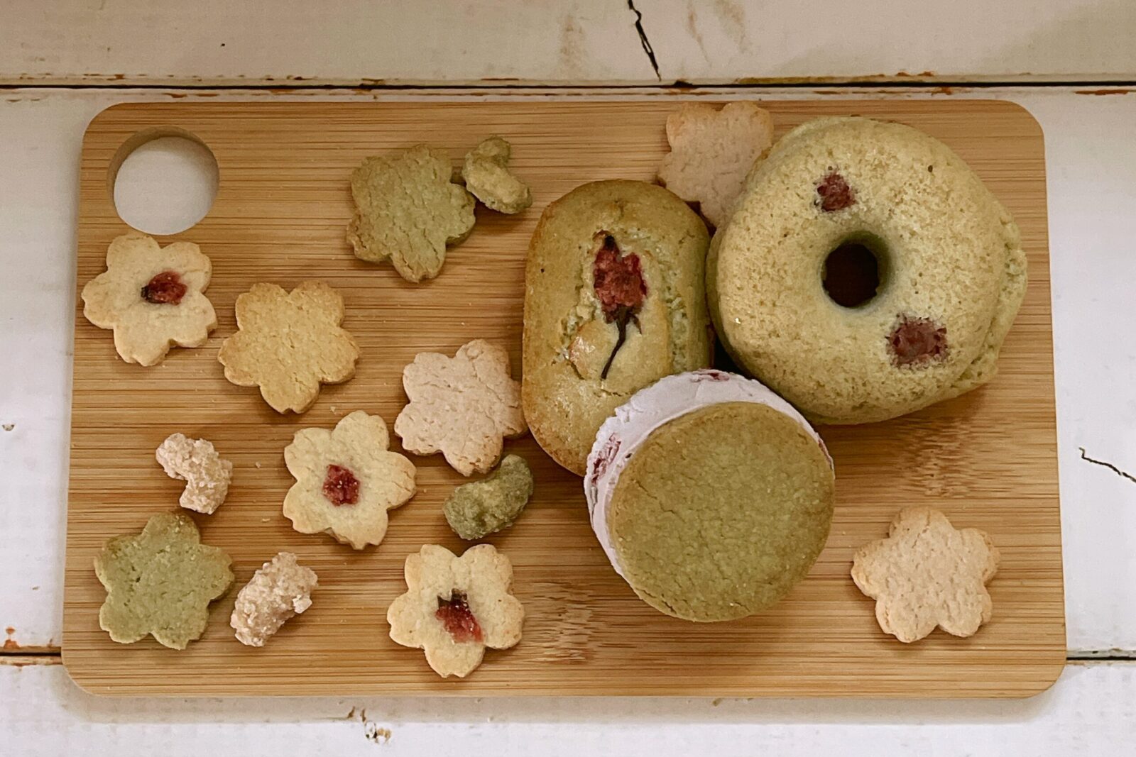 オーガニックナッツを使用したクリームを米粉のスポンジと組み合せ、